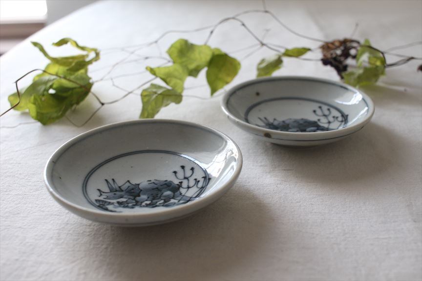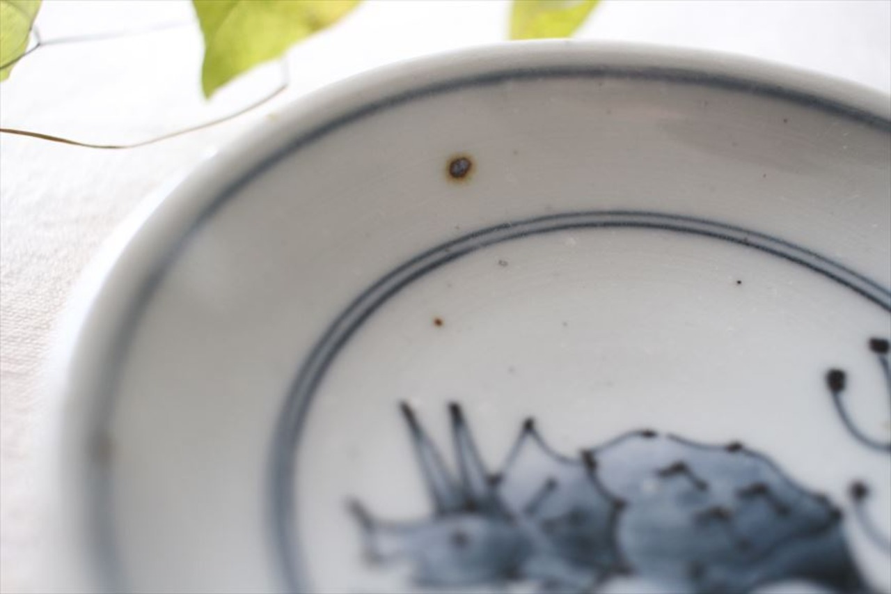 古伊万里のような優し気で柔らかな古典柄の豆皿のようですが、絵柄は可愛い恐竜です。