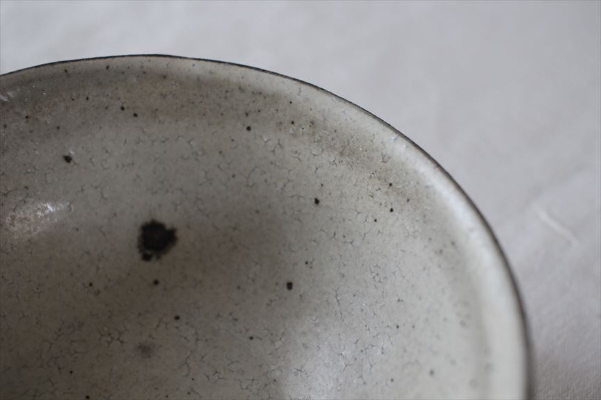 石ハゼ、鉄粉、ピンホール、貫入などが見られますが、荒々しい表情も魅力の一つです。原土に含まれる小石や鉄分なども精製しすぎることなく制作されており、それらの素材の持つ表情としてお楽しみください。
