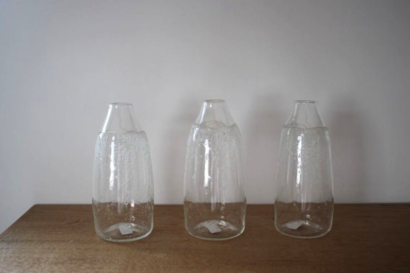 温かみのあるガラスの器。細かい気泡とアンティークのようなゆらぎに懐かしさを感じます。
