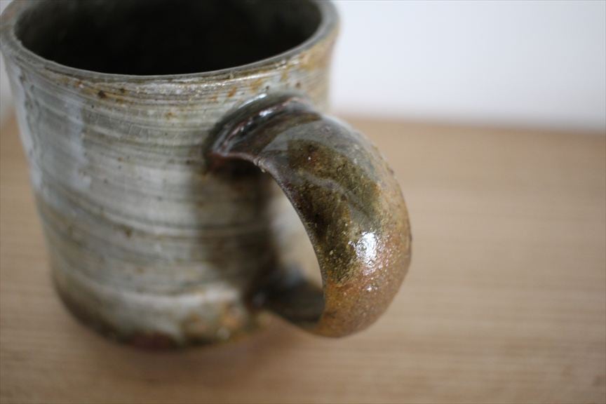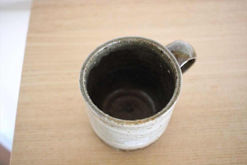 迫力ある刷毛目の小ぶりのマグカップです。