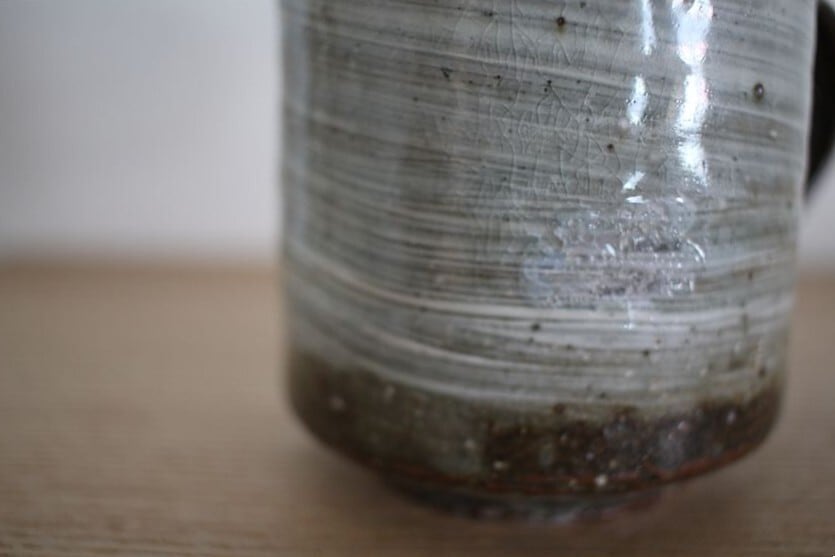石ハゼ、鉄粉、ピンホール、貫入などが見られますが、荒々しい表情も魅力の一つです。原土に含まれる小石や鉄分なども精製しすぎることなく制作されており、それらの素材の持つ表情としてお楽しみください。
