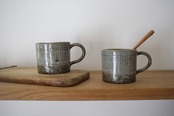 石ハゼ、鉄粉、ピンホール、貫入などが見られますが、荒々しい表情も魅力の一つです。原土に含まれる小石や鉄分なども精製しすぎることなく制作されており、それらの素材の持つ表情としてお楽しみください。