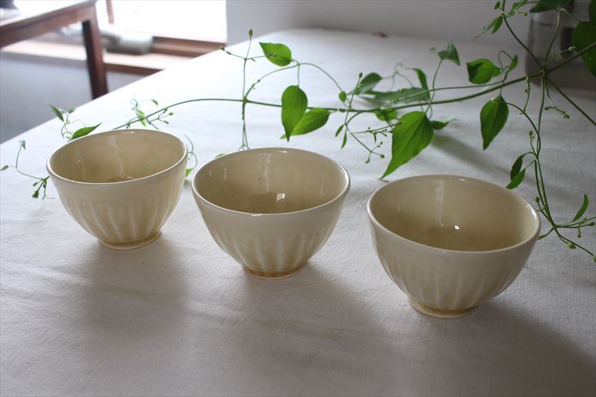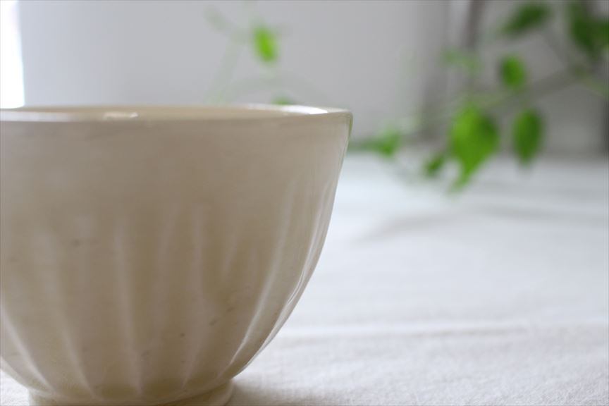 丸みを帯びた淡い生成りの作品や鉄粉の混ざる可愛らしいグレーの粉引きの作品など。