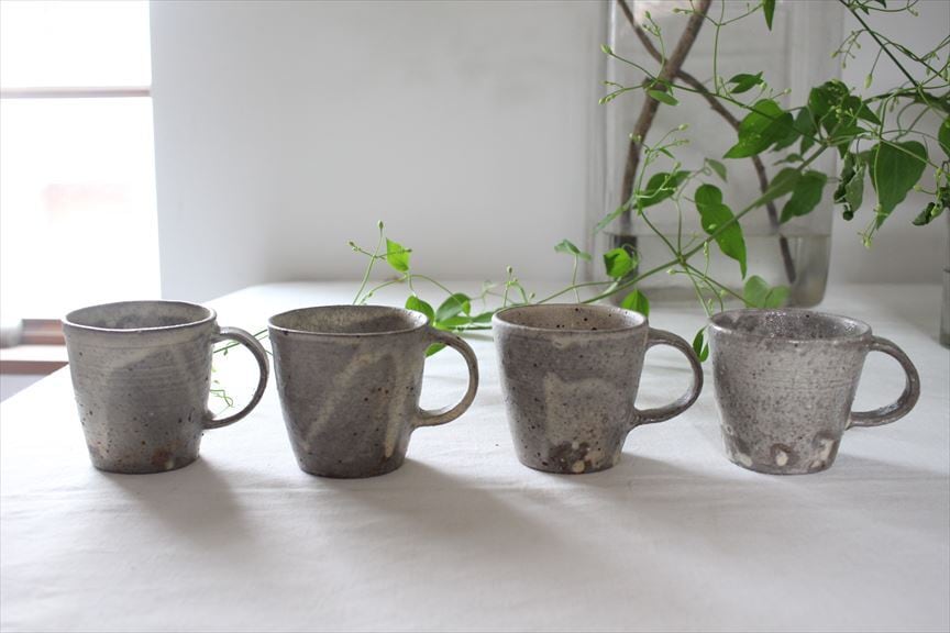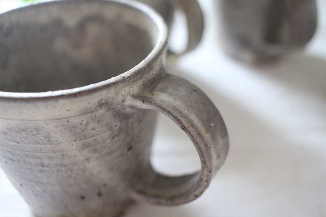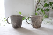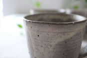 丸みを帯びた淡い生成りの作品や鉄粉の混ざる可愛らしいグレーの粉引きの作品など。