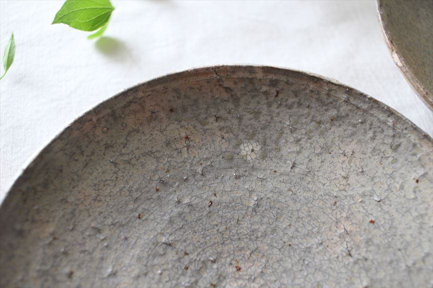 石ハゼ、鉄粉、ピンホール、貫入などが見られますが、荒々しい表情も魅力の一つです。原土に含まれる小石や鉄分なども精製しすぎることなく制作されており、それらの素材の持つ表情としてお楽しみください。