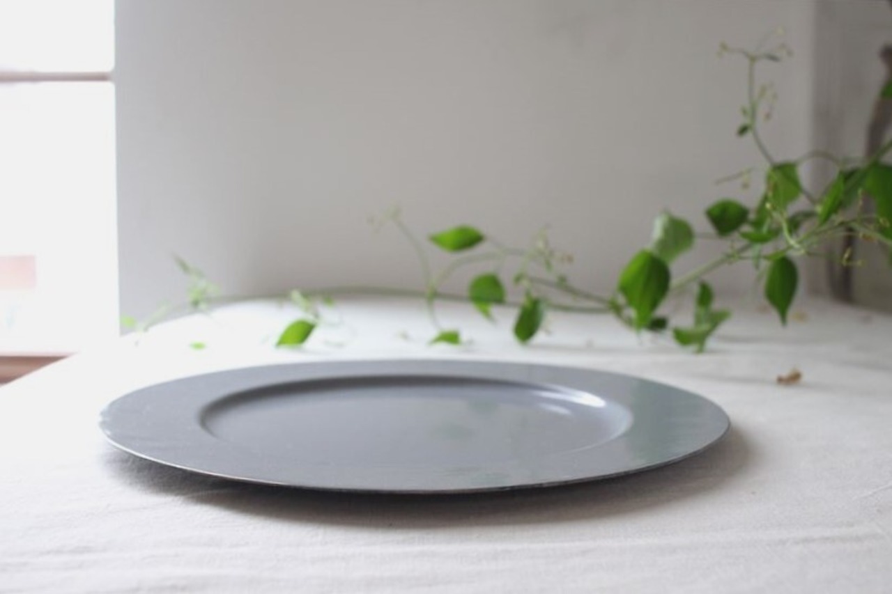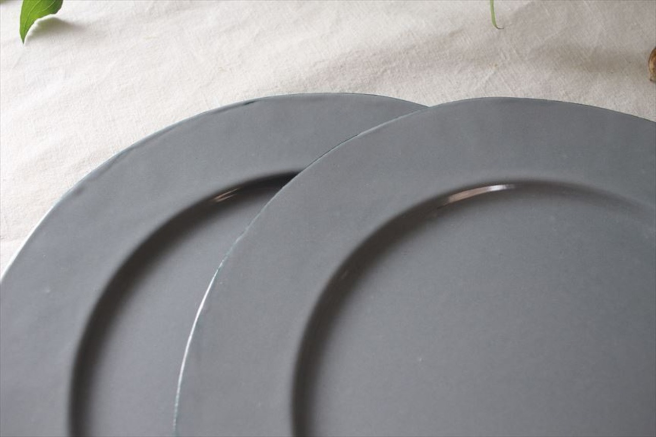 nijiiro|銅ホーロー リム皿Ⅿ (薄グレー)