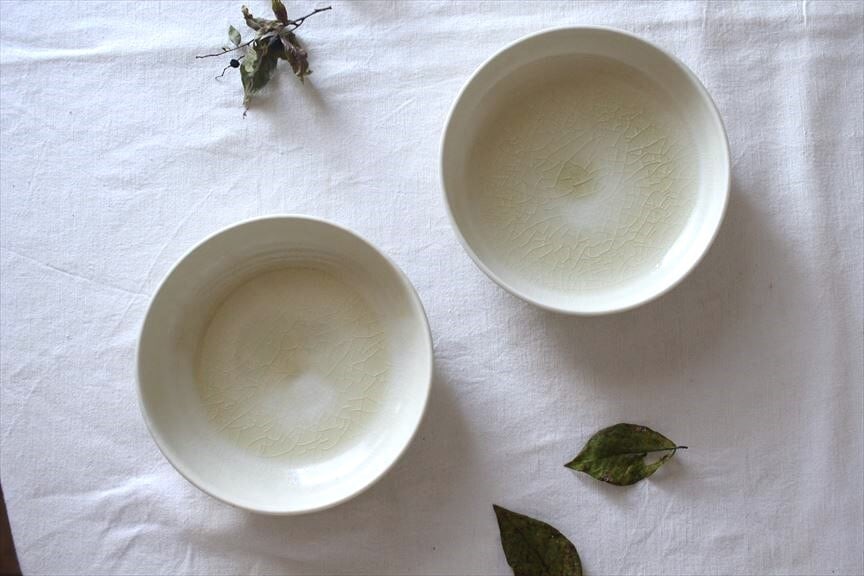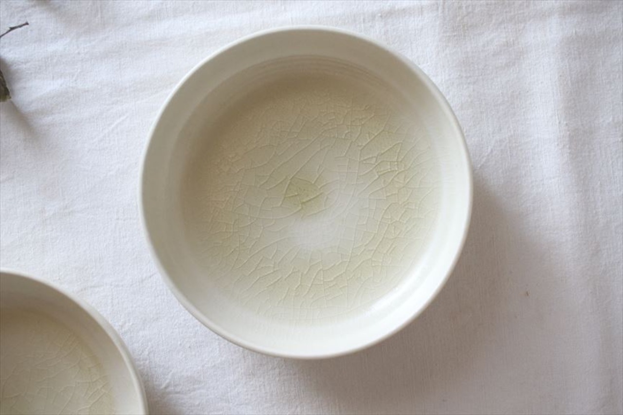 繊細なラインの輪郭に釉薬の流れや溜まり、細かな貫入が美しく、控えめに装飾を加えています。