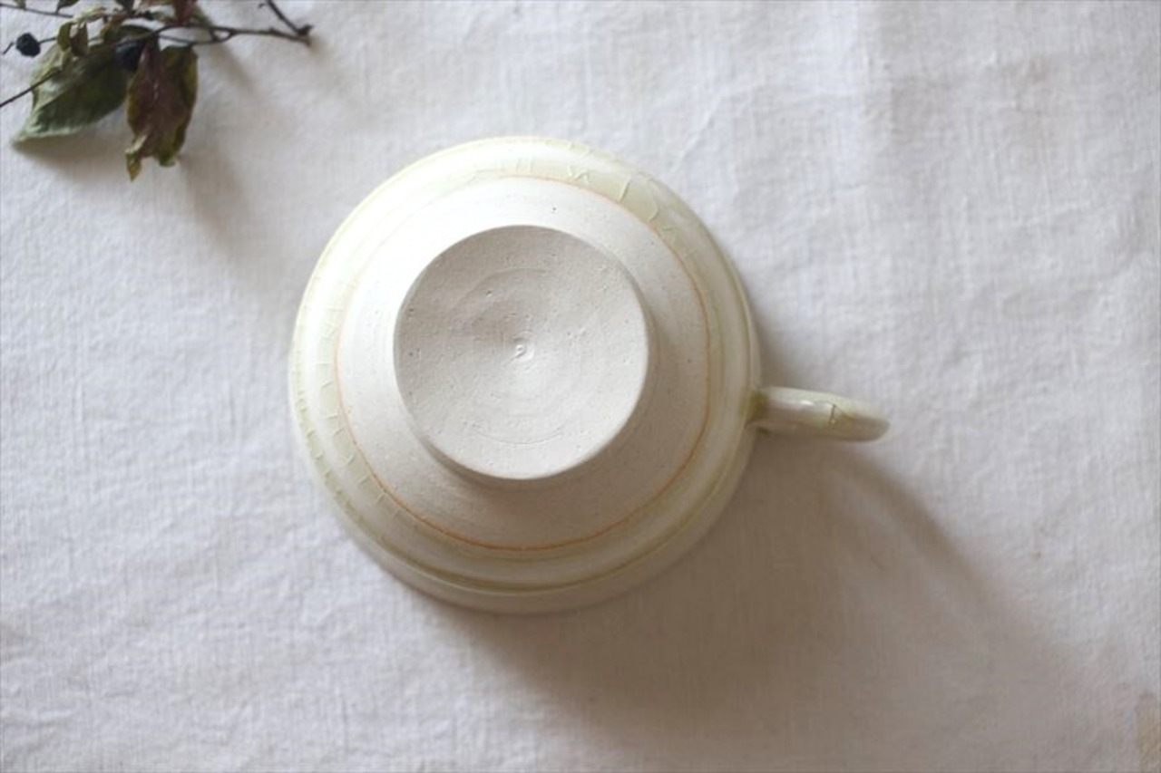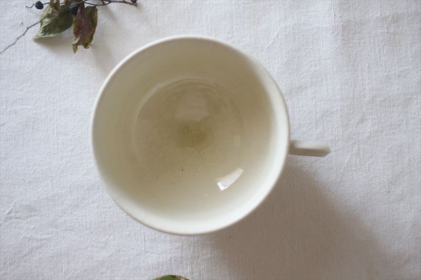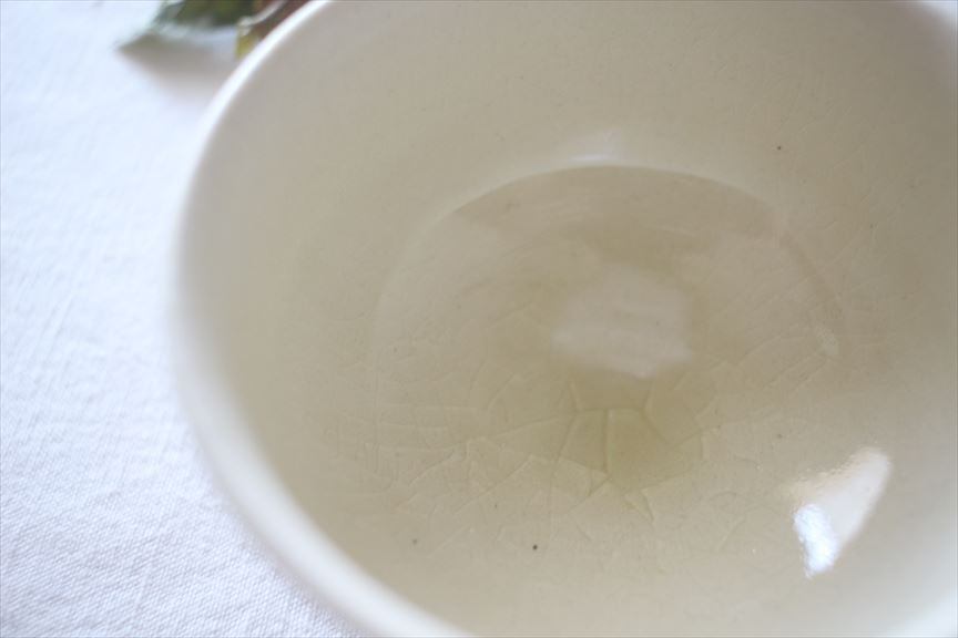 繊細なラインの輪郭に釉薬の流れや溜まり、細かな貫入が美しく、控えめに装飾を加えています。
