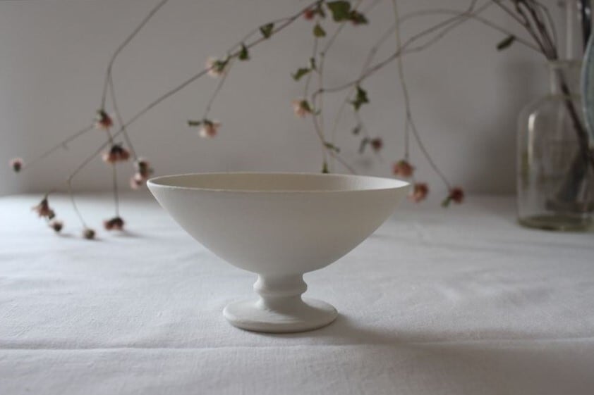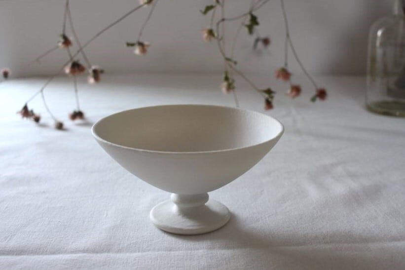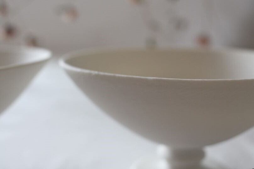 白い磁化粧のうつわの表面は極細かな凹凸があり、触るとざらざらとさらさらの中間の感触です。
