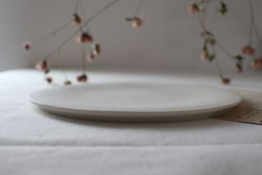 白い磁化粧のうつわの表面は極細かな凹凸があり、触るとざらざらとさらさらの中間の感触です。