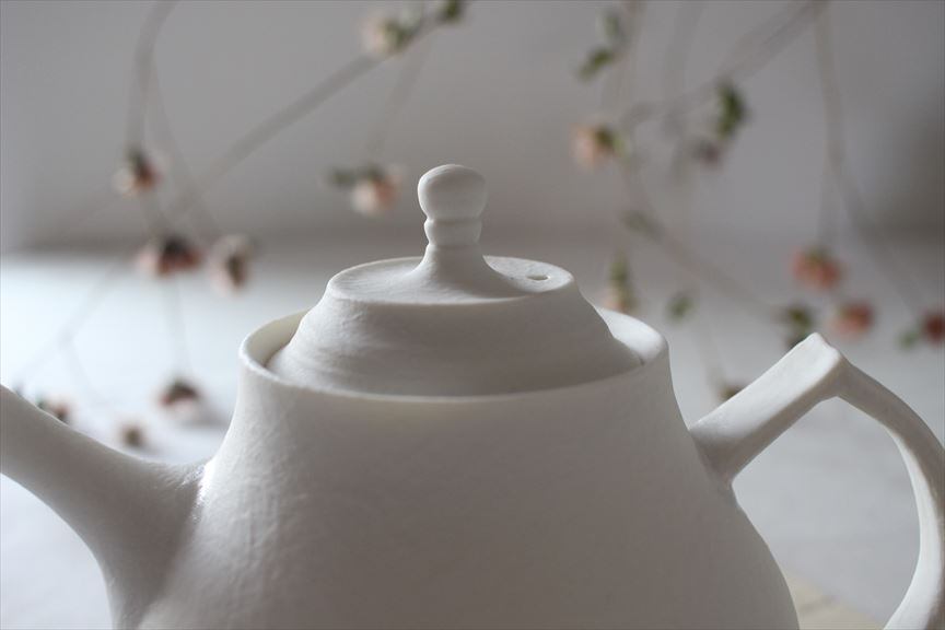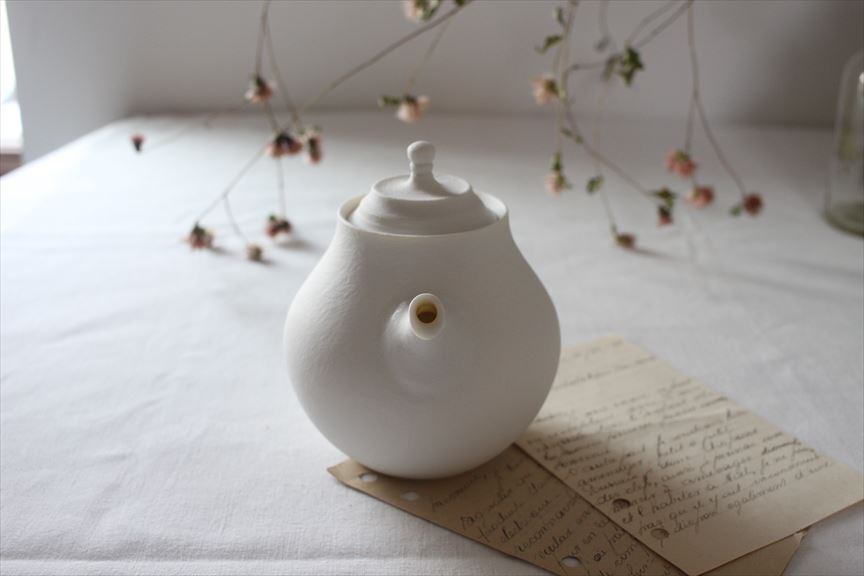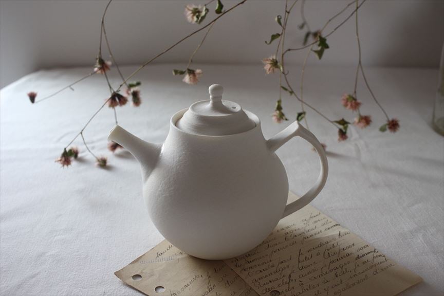 凛々しくスタイリッシュなポット。清らかな白が晴れやかな雰囲気です。