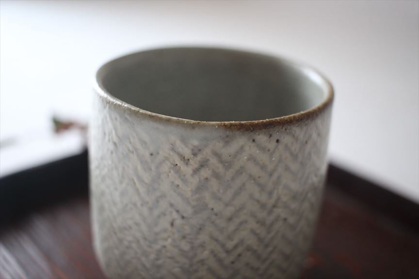島岡桂|地釉縄文象嵌湯呑(角小)a