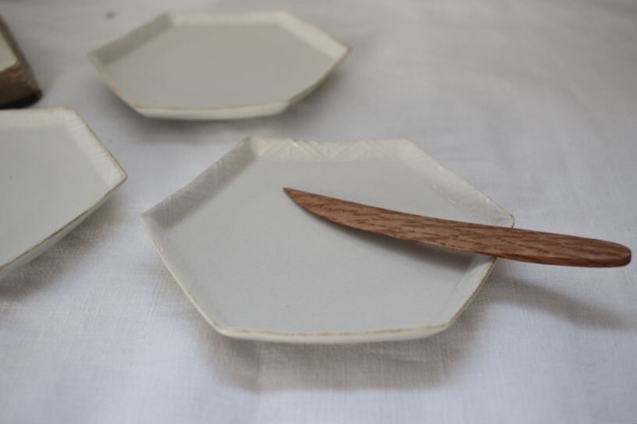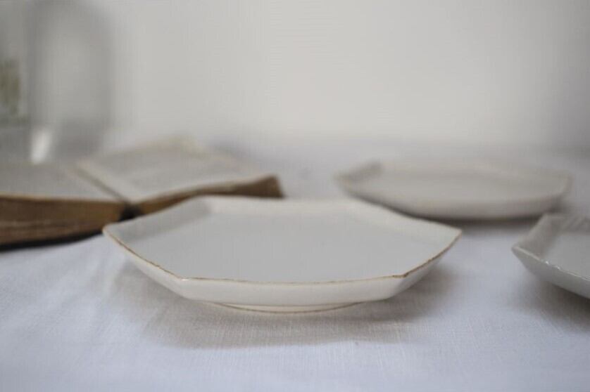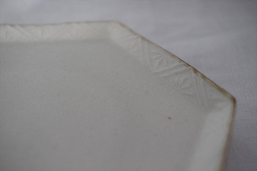 斉藤幸代|六角縁柄皿 白