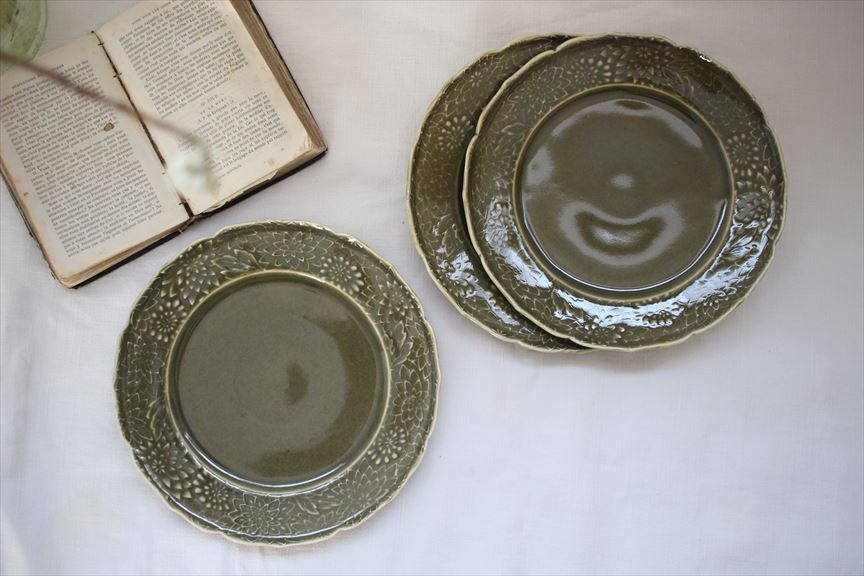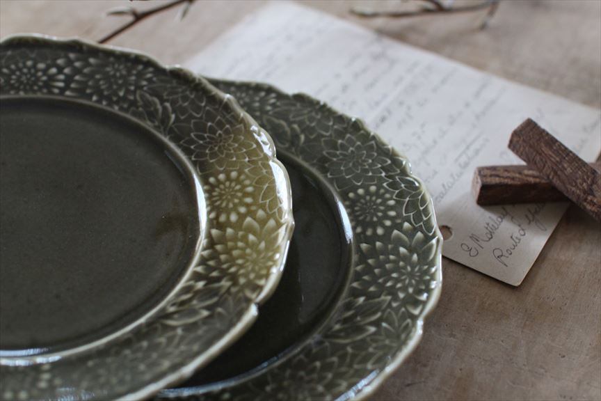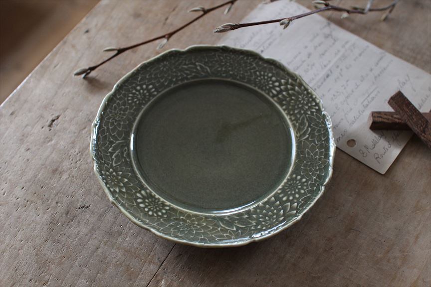 斉藤幸代|菊尽くしリム6寸皿 うぐいす