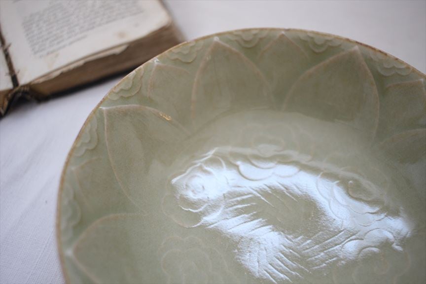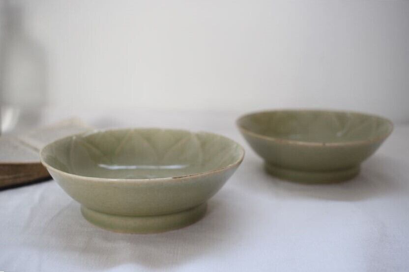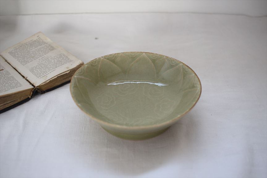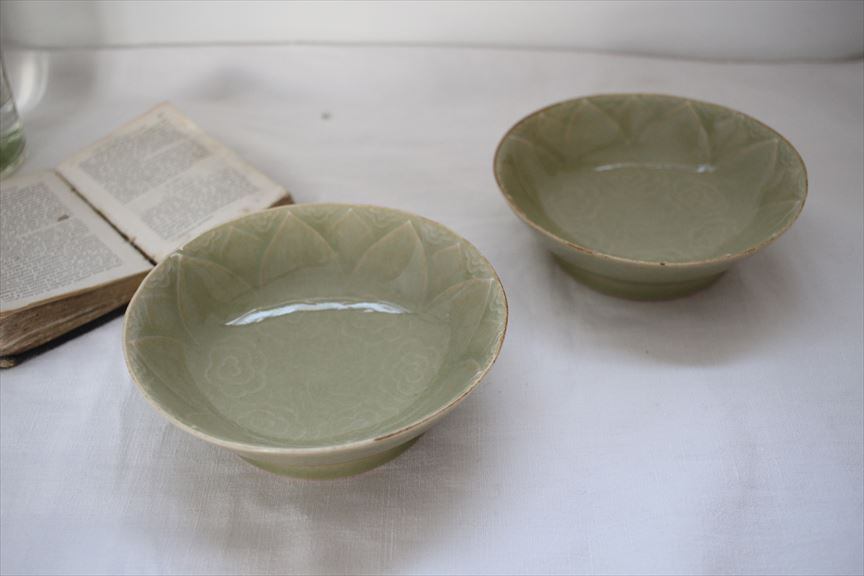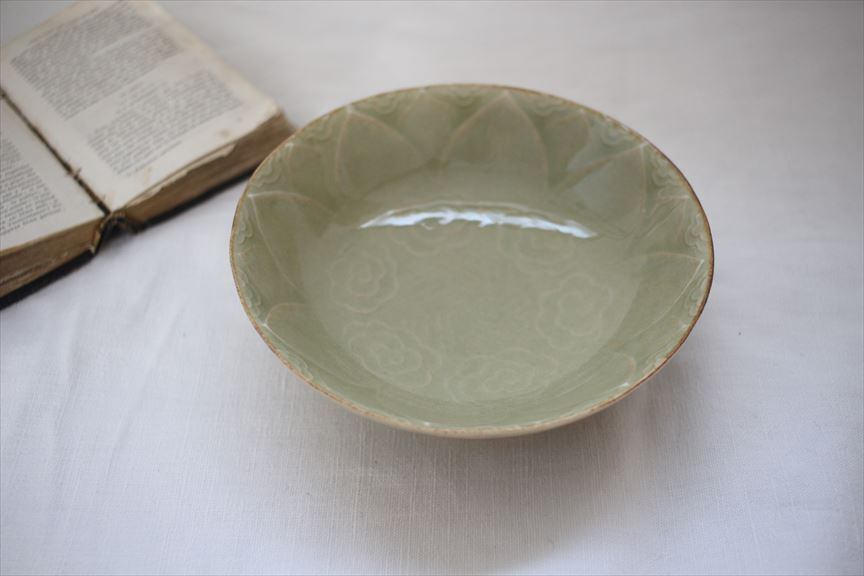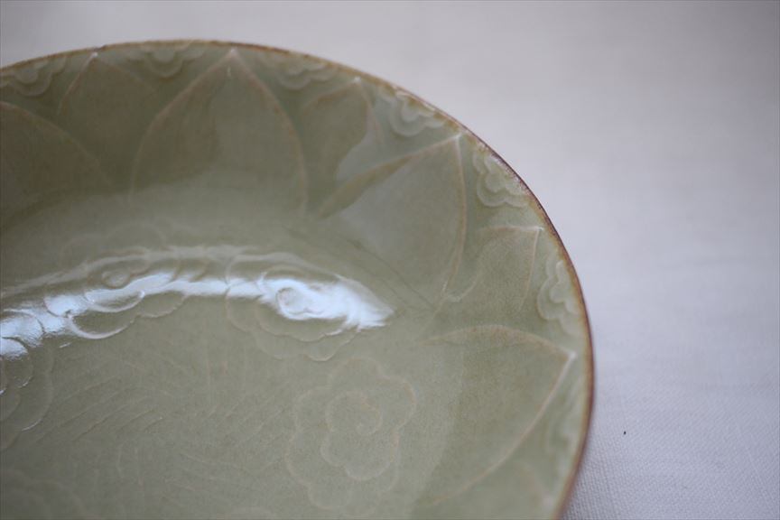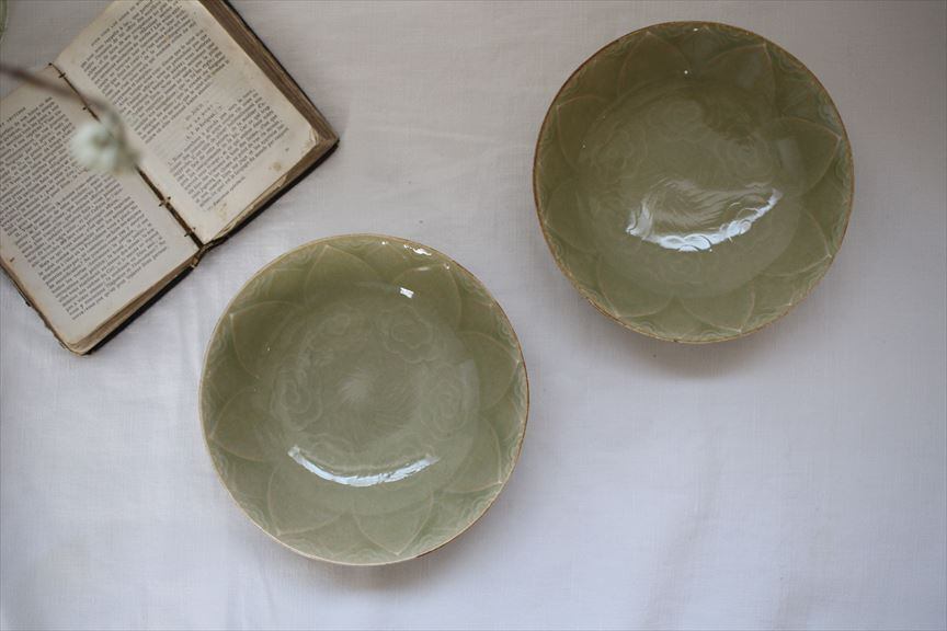 立体的に浮かび上がる美しく繊細な模様の器たちは、草木染めのような落ち着いた柔らかな色をのせられてしっとりとした佇まいです。