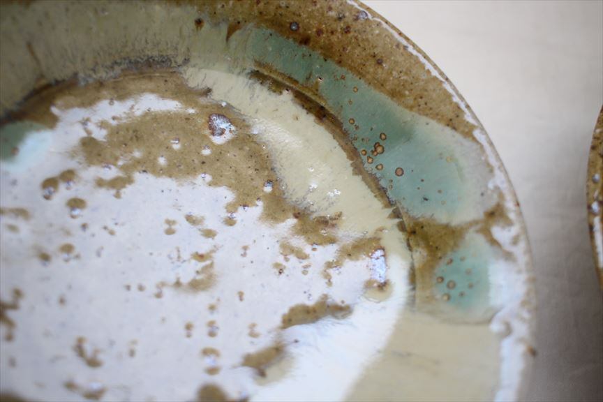 石ハゼ、鉄粉、ピンホール、貫入などが見られますが、作品の魅力の一つです。原土に含まれる小石や鉄分なども精製しすぎることなく制作されており、それらの素材の持つ表情としてお楽しみください。