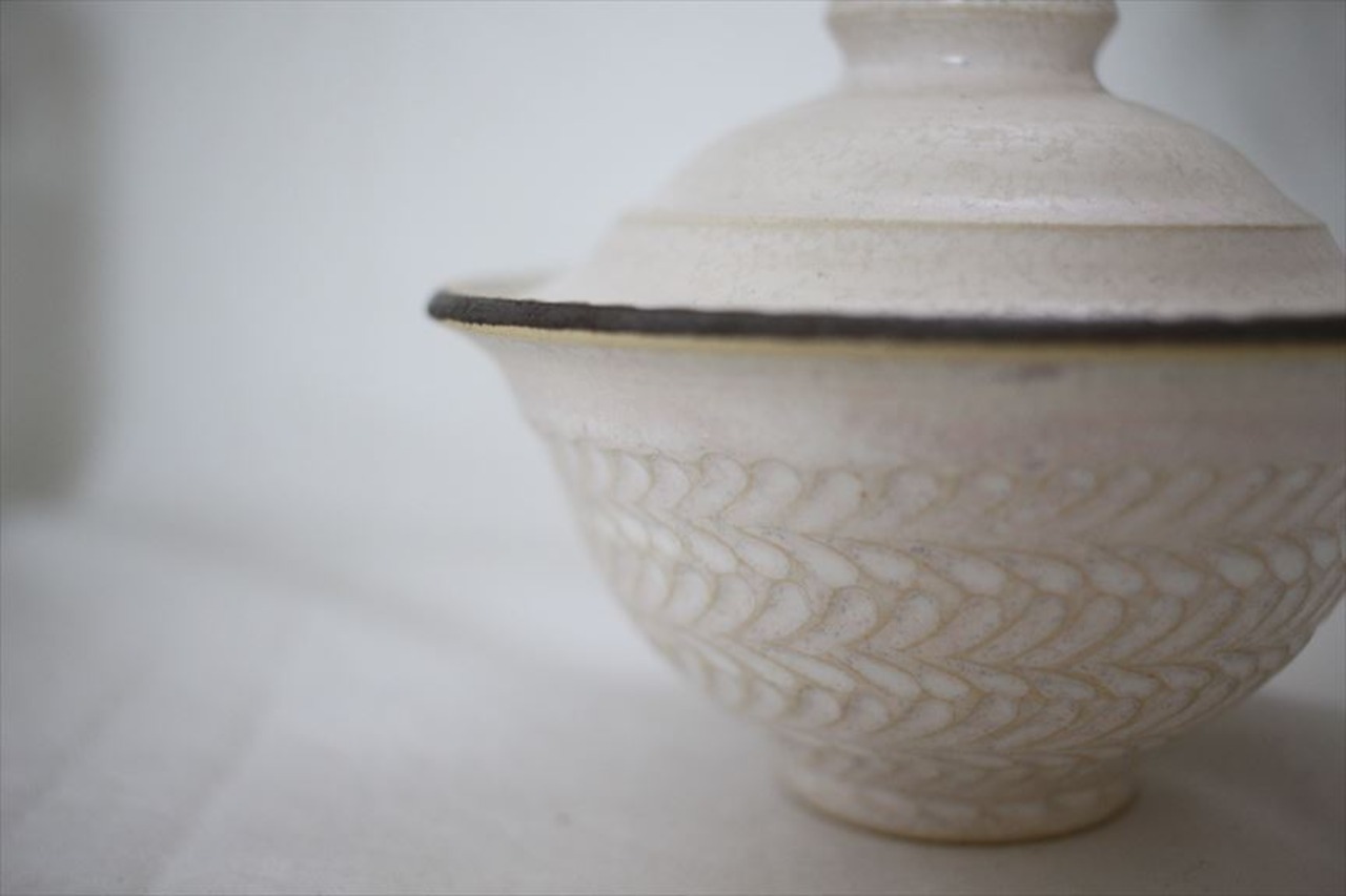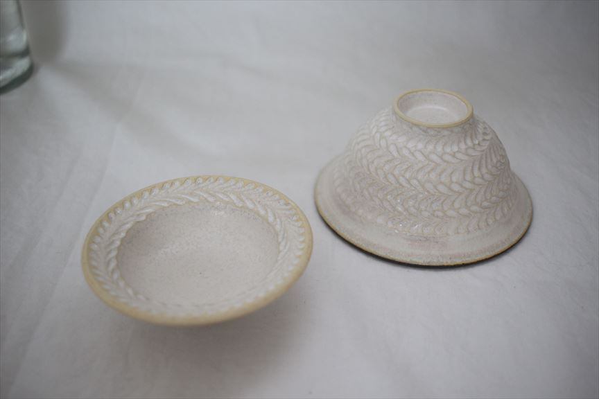 手彫りでありながら細かく正確な模様が施された作品たちは、清楚で美しく、凛とした姿に心惹かれます。