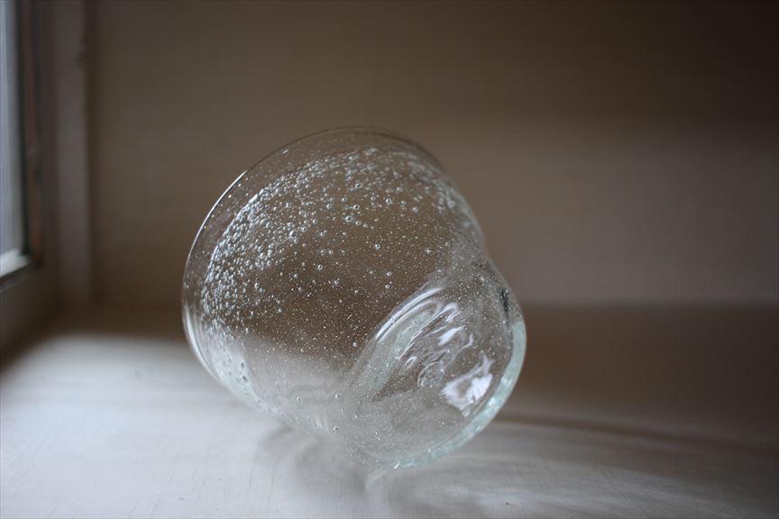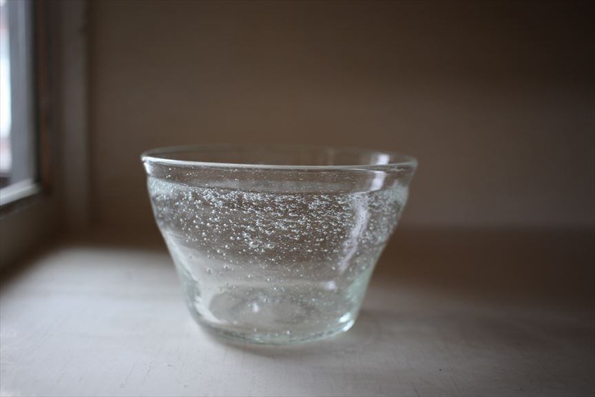 温かみのあるガラスの器。細かい気泡とアンティークのようなゆらぎに懐かしさを感じます。