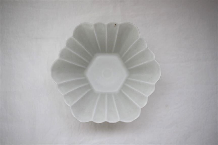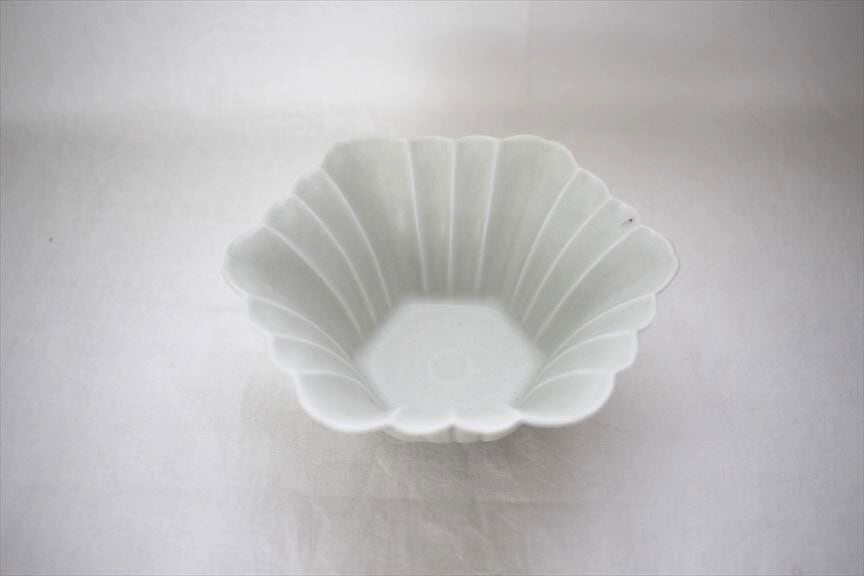 土井善男|緑白釉6角輪花鉢