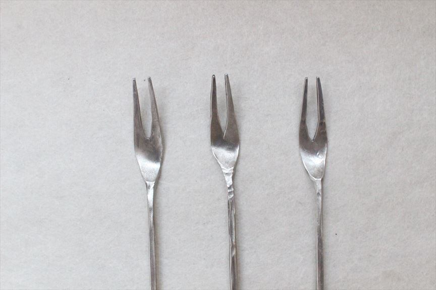 こちらのカトラリーは打ち出して作っている為、表面が凹凸しております、凹に錆が付着した場合は爪楊枝でこすってください。