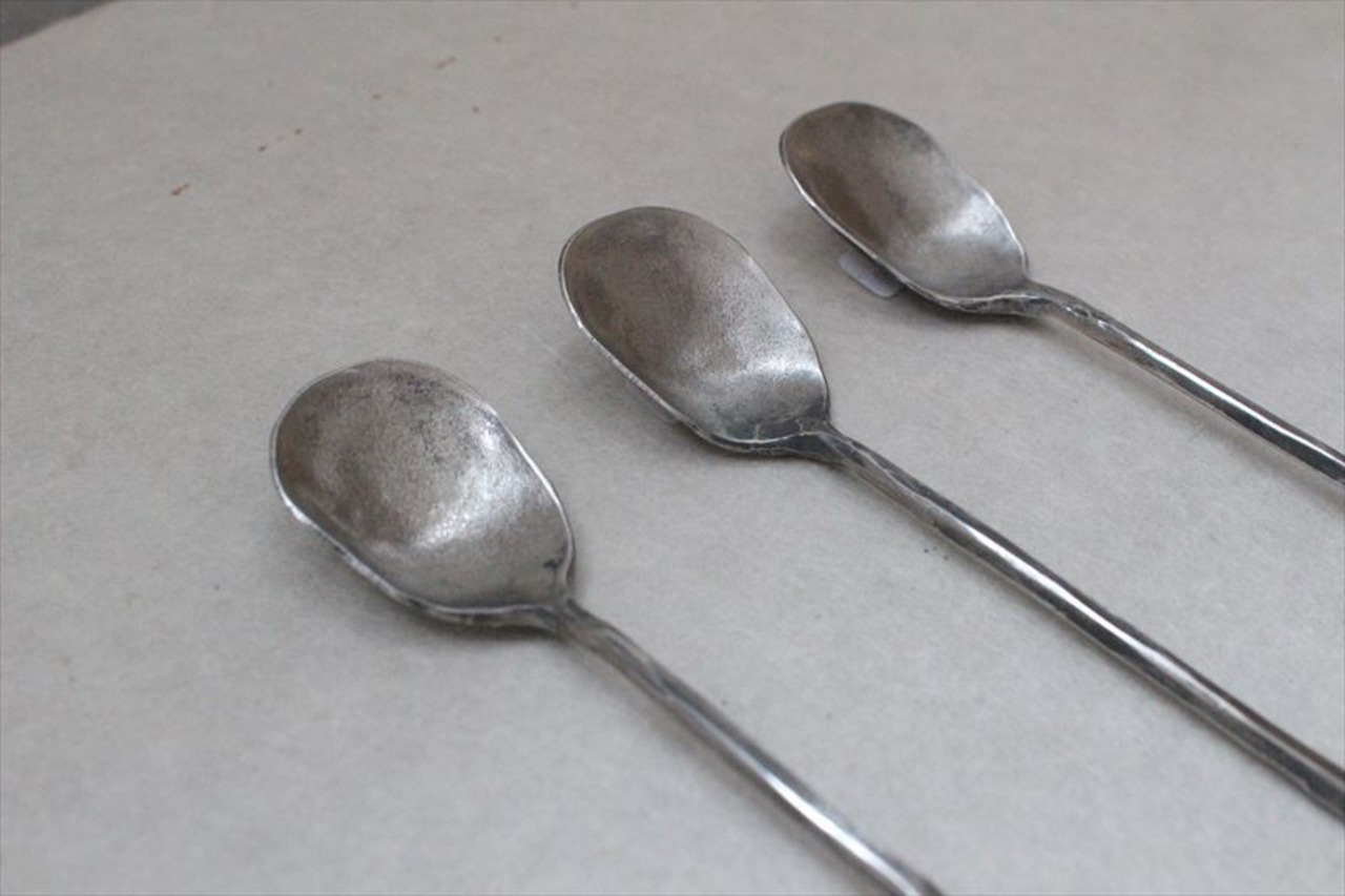 こちらのカトラリーは打ち出して作っている為、表面が凹凸しております、凹に錆が付着した場合は爪楊枝でこすってください。