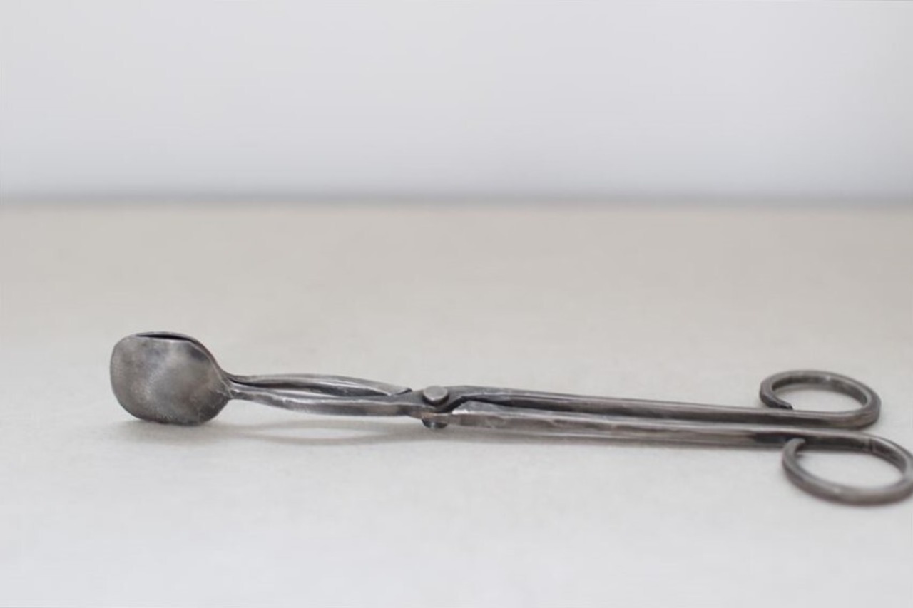 鉄で作られた大きなオブジェ、高く大きな枝を生けることのできる重い鉄の花器、一本の金属の棒をただ叩いて叩いて伸ばし広げ、カトラリーに仕上げたぬくもりのある素朴な作品など、