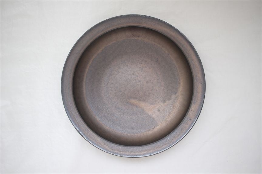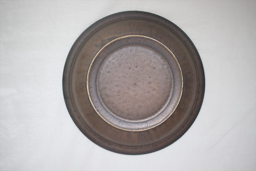 ブロンズのメタリックな表情ですが、派手さはなく、色の濃淡が味わい深い深皿。