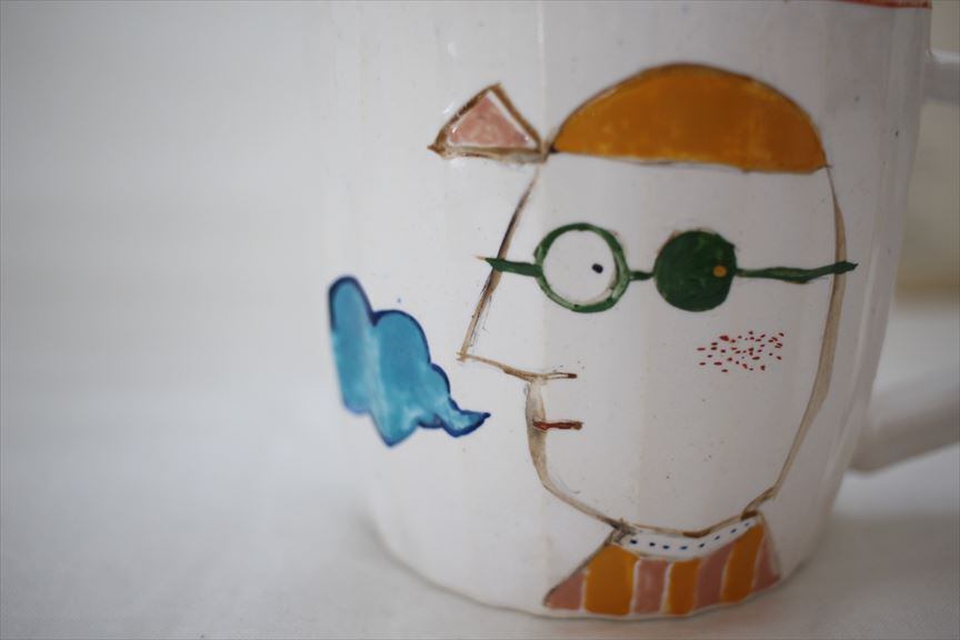 伝統的な色絵のものの他に、絵本の中から出てきたような動物たちが時に可愛らしく、時に個性的に抽象的に描かれたお皿やカップを作られます。