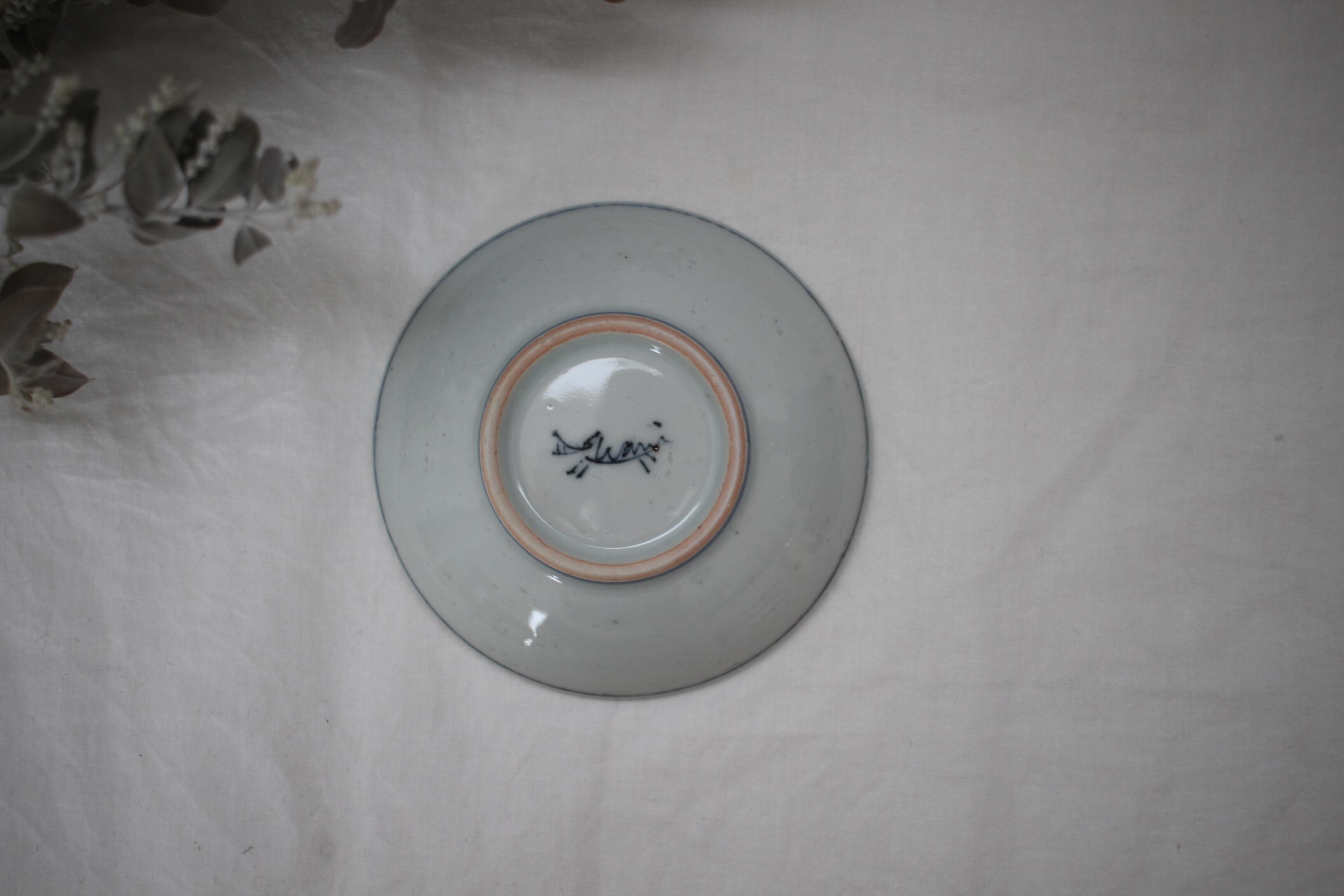 古伊万里のような優し気で柔らかな古典柄の豆皿のようですが、絵柄は可愛い恐竜です。