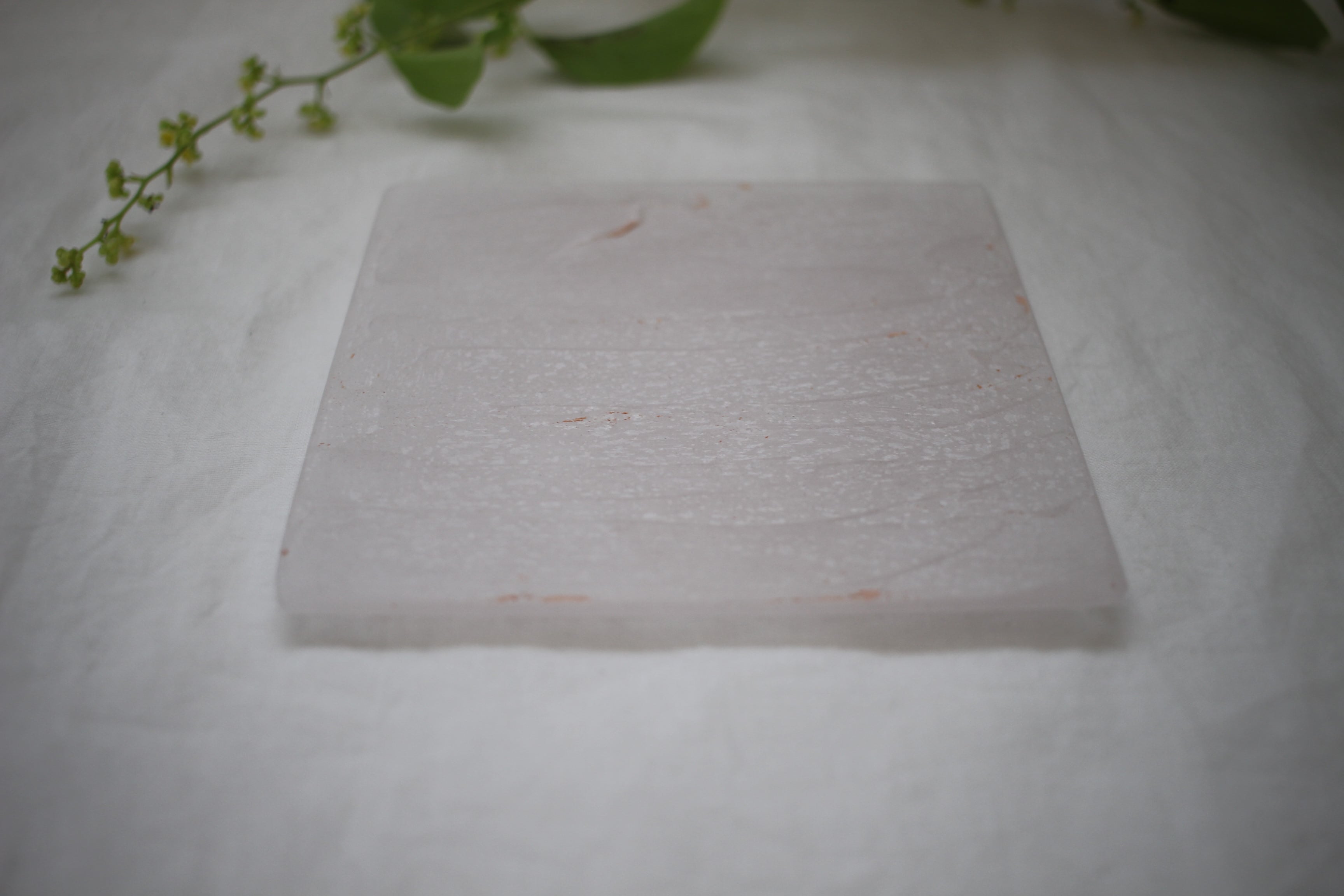 うっすら淡いピンク。表面に微かな凹凸があり、それが模様となり表情となっています。
