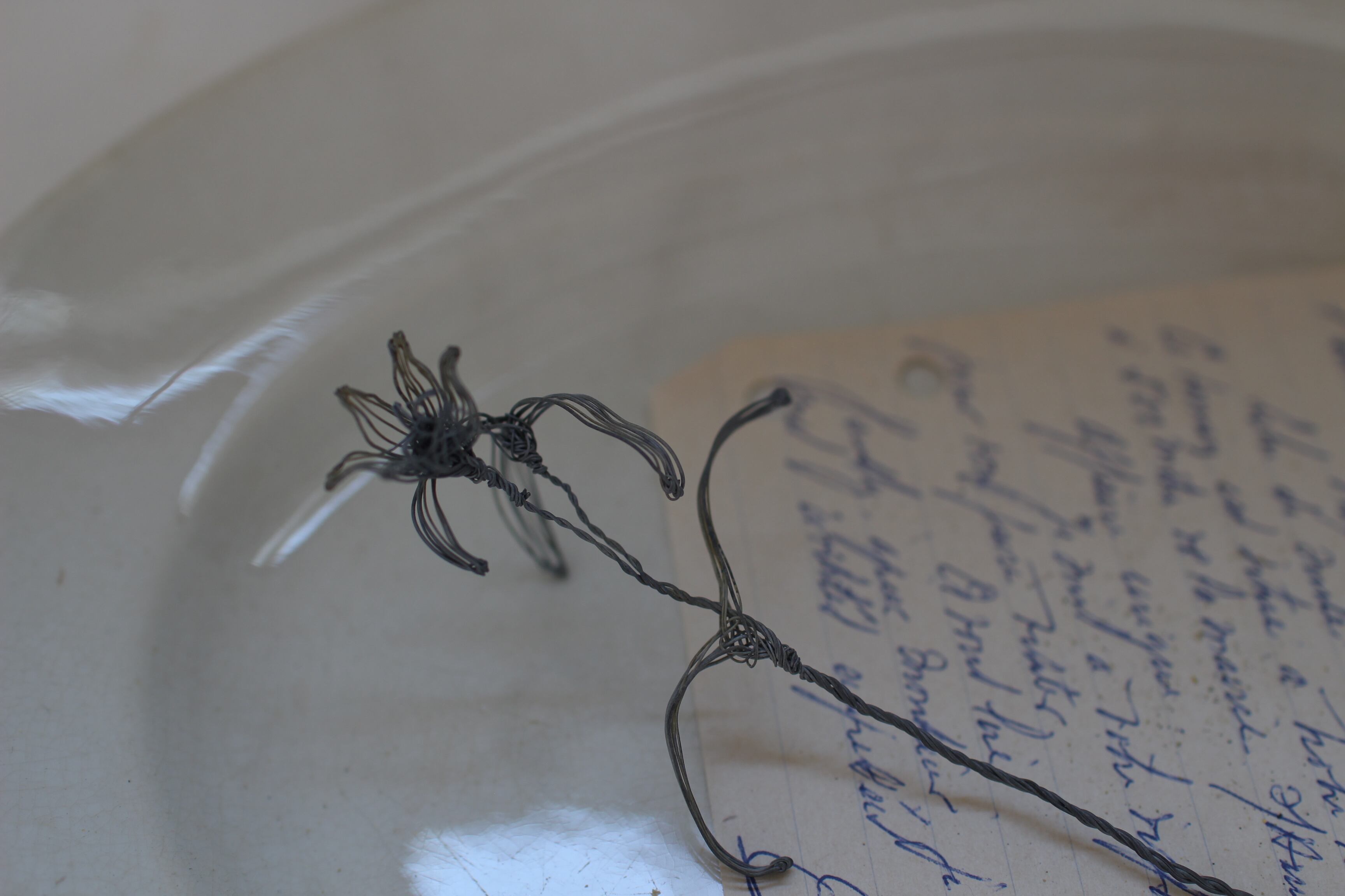 針金という無機質な素材がしなやかに生きる植物の命を表現する。