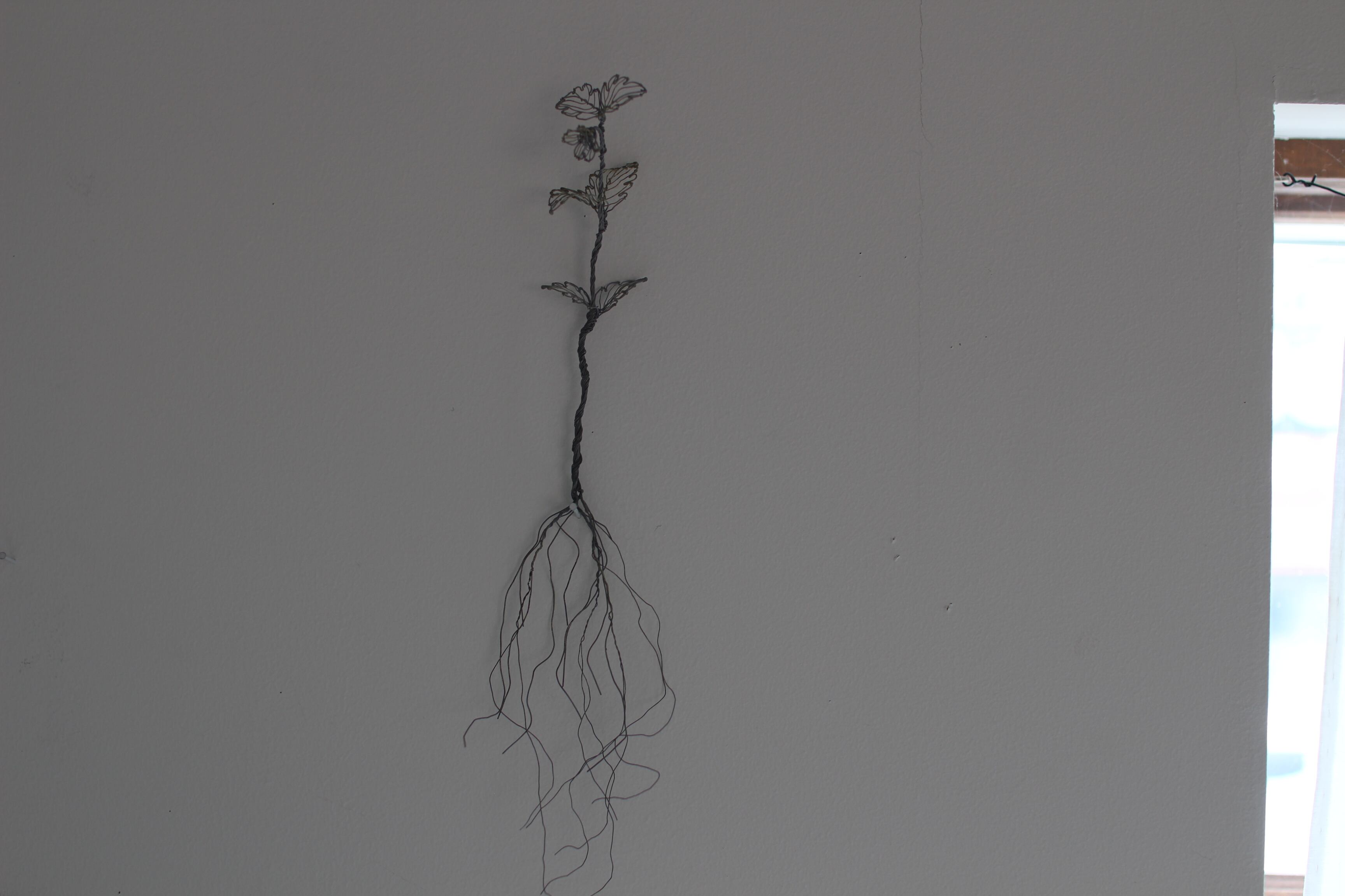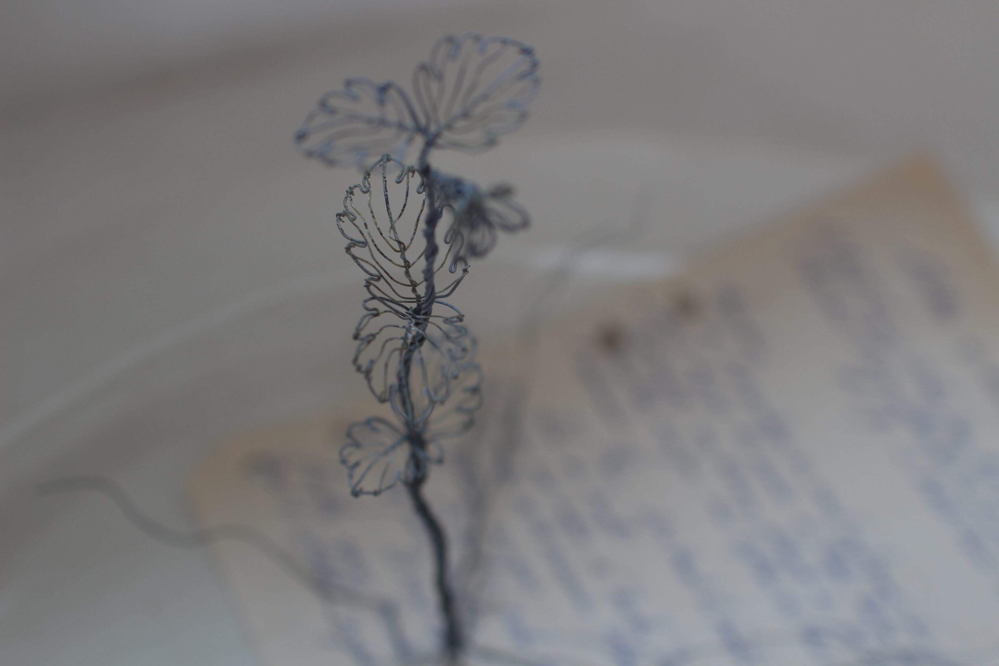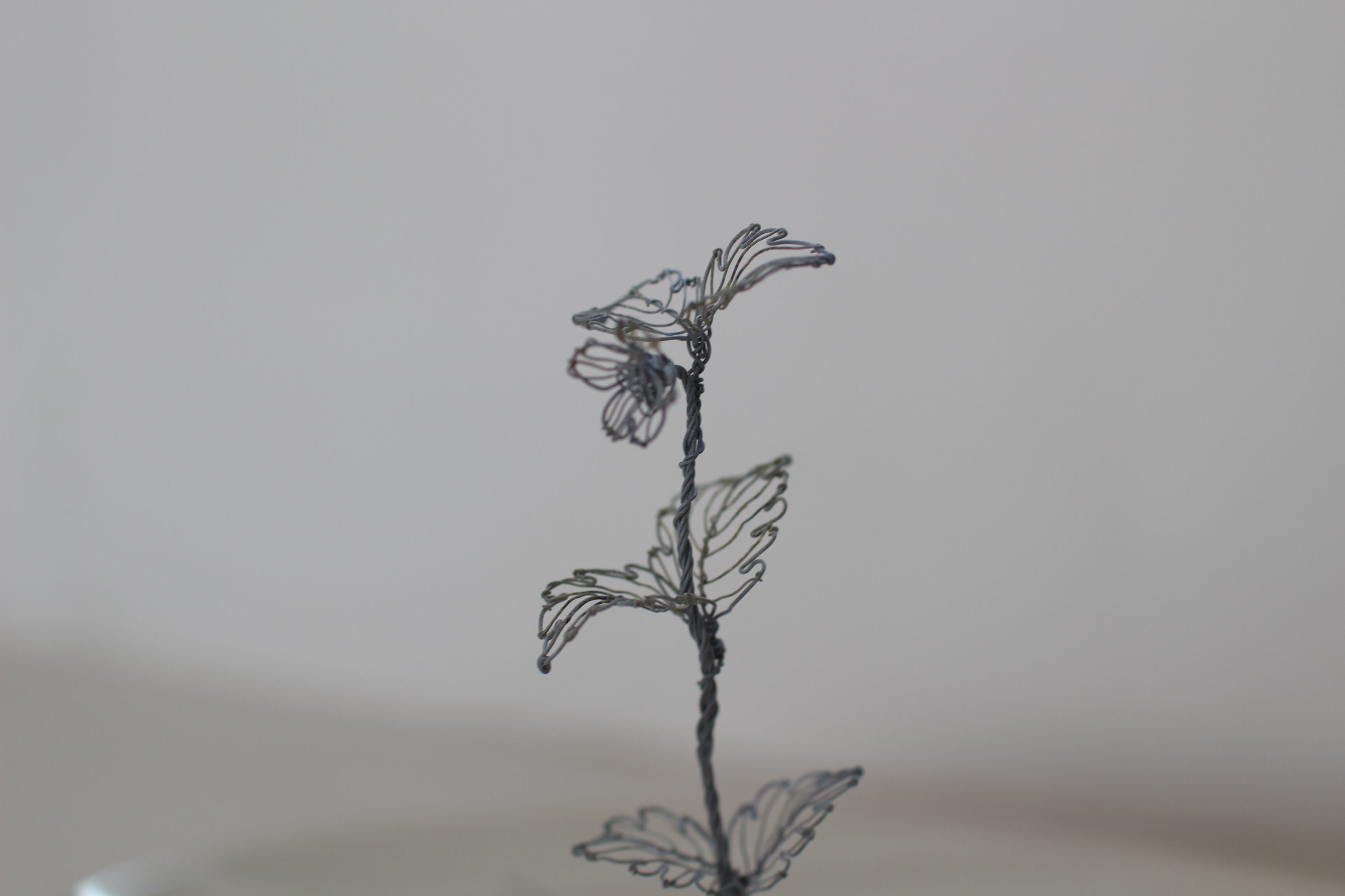 針金という無機質な素材がしなやかに生きる植物の命を表現する。
