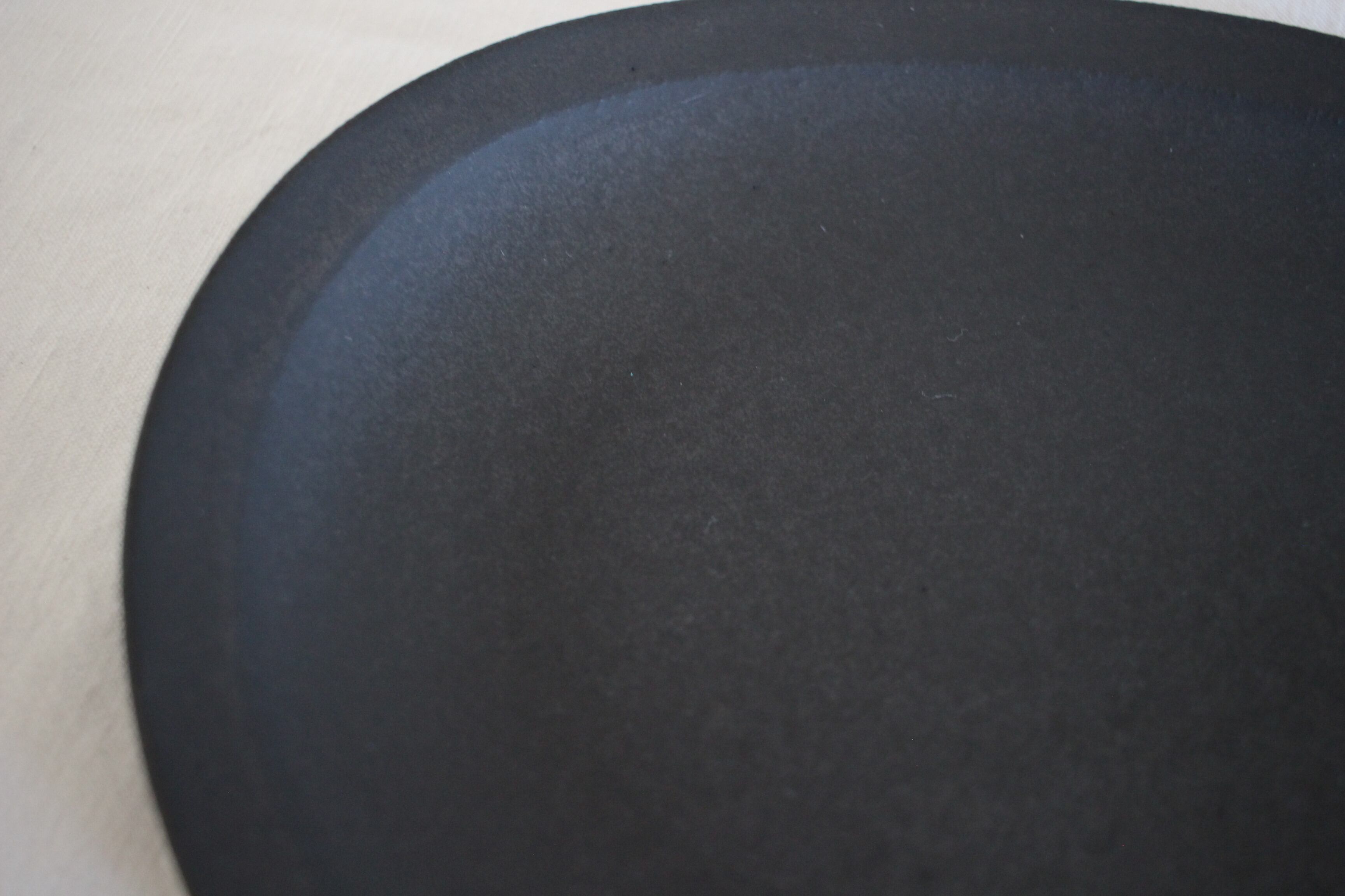 いぶした金を覆うような深遠な黒、洗練されたスタイル、軽さ、安定のスタッキング、触れた手に伝わる土のぬくもり、作品の一つ一つが持つ自然なゆらぎ。