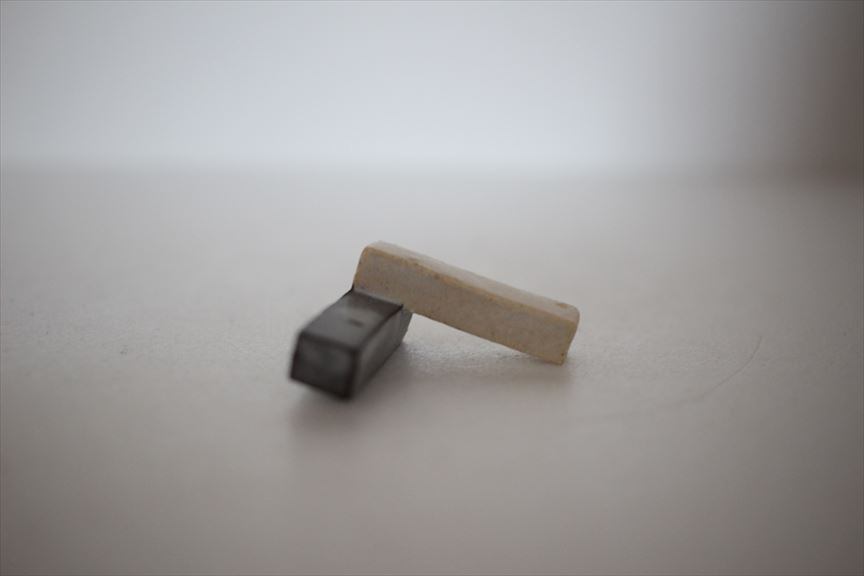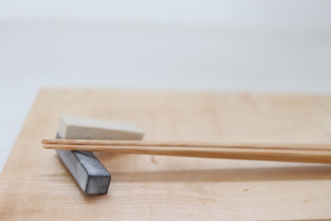 積み木が二つ重なった形。路色(みちいろ)と名付けたくなる少しくすんだ絶妙な色合わせが可愛い。お箸を乗せてもまた可愛い。