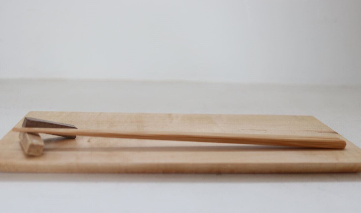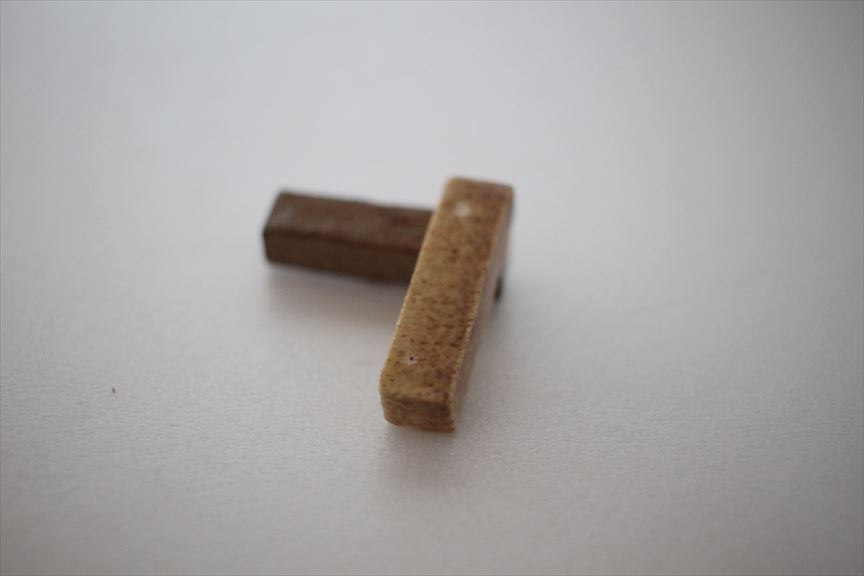 積み木が二つ重なった形。路色(みちいろ)と名付けたくなる少しくすんだ絶妙な色合わせが可愛い。お箸を乗せてもまた可愛い。