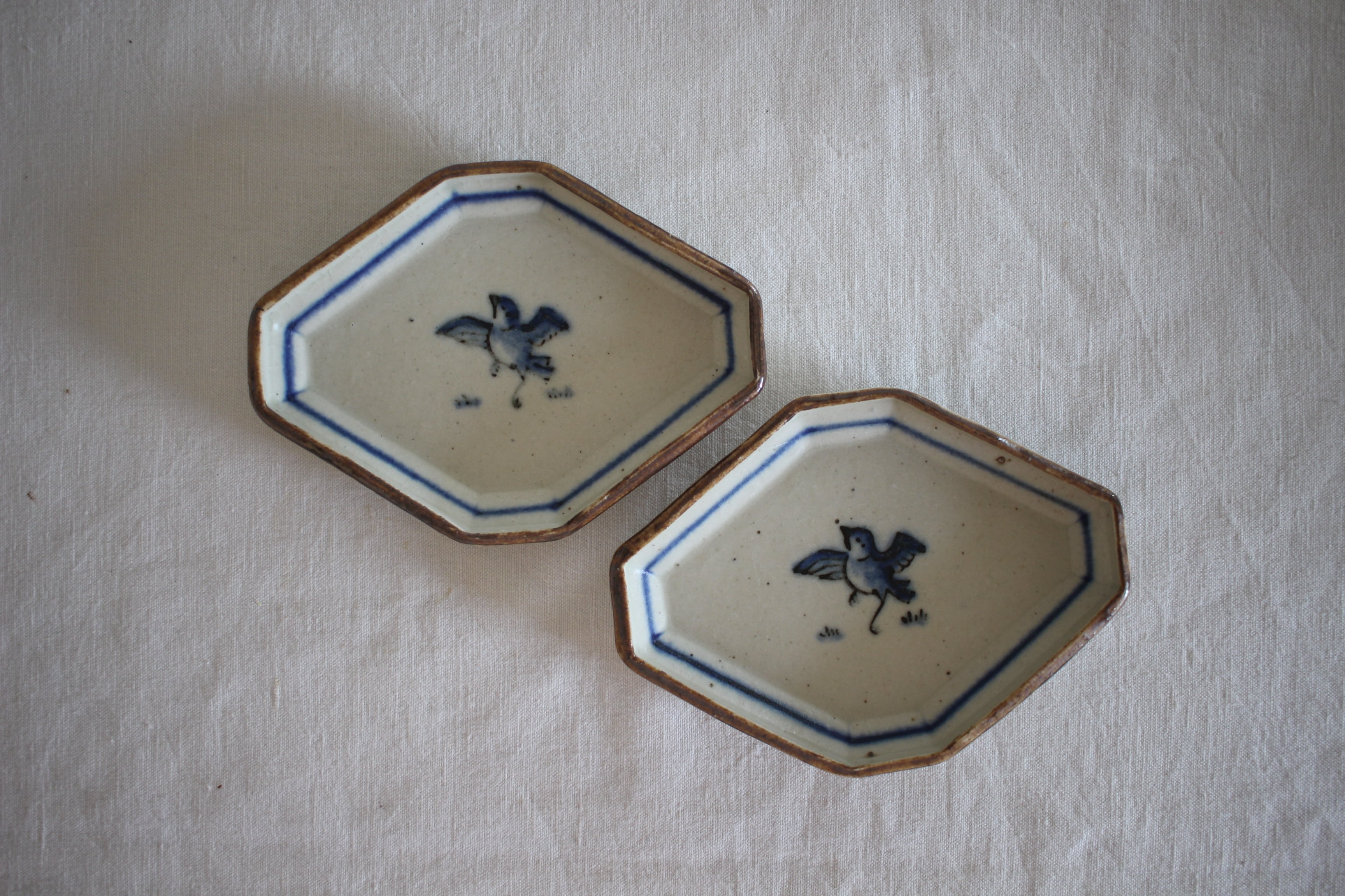 光萌窯(中西申幸)|鳥遊戯画菱形豆皿Ⓒ
