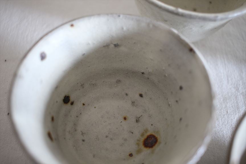 石ハゼ、鉄粉、ピンホール、貫入などが見られますが、荒々しい表情も魅力の一つです。原土に含まれる小石や鉄分なども精製しすぎることなく制作されており、それらの素材の持つ表情としてお楽しみください。