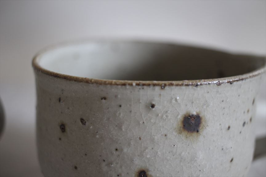石ハゼ、鉄粉、ピンホール、貫入などが見られますが、荒々しい表情も魅力の一つです。原土に含まれる小石や鉄分なども精製しすぎることなく制作されており、それらの素材の持つ表情としてお楽しみください。