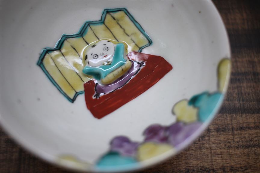 伝統的な色絵のものの他に、絵本の中から出てきたような動物たちが時に可愛らしく、時に個性的に抽象的に描かれたお皿やカップを作られます。